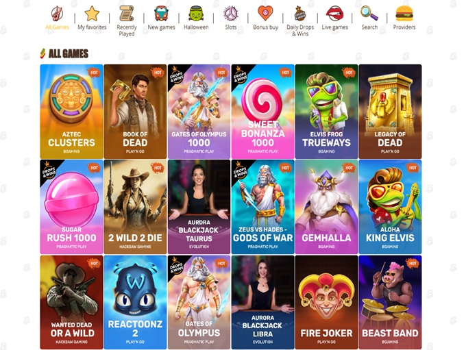 - Software: 1x2gaming, 2by2 Gaming, Amatic Industries, Ash Gaming, BetSoft, Big Time Gaming, ELK Studios, Evolution Gaming,EYECON,Ezugi,Greentube, lightningboxgames, Microgaming, Net Entertainment, Novomatic, Oryx, Play'n GO, playson, Playtech, Push Gaming, Quickspin, Rabcat, Relax Gaming,SOFTSWISS,Thunderkick,Tom Horn Gaming, Yggdrasil, Endorphina, Wazdan,Booming Games, Gamomat, Pragmatic Play, Nolimit City, Red Tiger Gaming, BF Games,Spinomenal,Red Rake Gaming,Bally Wulff,Skillzzgaming,Fantasma Games, Iron Dog Studio, Old Skool Studios,Foxium,Just For The Win,Kalamba,Spin Games,Revolver Gaming,Reflex Gaming,Spadegaming,Triple Edge Studios,BGAMING,PearFiction Studios,Northern Lights Gaming,Stormcraft Studios,Wild Streak Gaming,Slingshot Studios,Golden Hero,Fortune Factory Studios,Switch Studios,RubyPlay,4ThePlayer,AvatarUX,Gamevy,Crazy Tooth Studio,Electric Elephant Games,Pocket Games Soft,Bulletproof Games,All41 Studios,Gluck Games,ReelPlay,Japan Technicals Games,Gameburger Studios,Neon Valley Studios,Golden Rock Studios,Spearhead Studios,Alchemy Gaming,Rarestone Gaming,Black Pudding Games,TrueLab Games,Snowborn Games,Boomerang Studios,Hacksaw Gaming,Max Win Gaming,SpinPlay Games,Gold Coin Studios,Bang Bang Games,Half Pixel Studios,Arcadem,Slotmill,SilverBack Gaming,Peter And Sons,Eurostar Studios,Aurum Signature Studios,SmartSoft Gaming,Real Dealer Studios,GONG Gaming,Blue Guru Games,On Air Entertainment,Buck Stakes Entertainment,Games Global,FlipLuck,Area Vegas,TaDa Gaming,Apparat Gaming,Spribe,Circular Arrow,Print Studios,Gaming Corps,Four Leaf Gaming,INO Games,Nailed It! Games,Atomic Slot Lab,Neko Games,Reel Kingdom,Indigo Magic,Light & Wonder,Galaxsys,Penguin King,Octoplay+115 moreShow less...