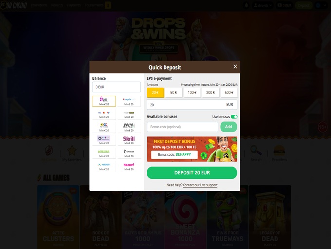 Pidin aluksi pelaamisesta bob-kasinolla, heillä oli hyvä kokoelma pelejä ja palveluntarjoajia, joista pidän, he tallettivat rahaa tänne ja heillä oli myös mukavia kotiutuksia, mutta muutaman kotiutuksen jälkeen he kysyivät uudelleen henkilöllisyystodistustani ja todisteosoitettani ja sen jälkeen en tiedä. en tee mieli leikkiä täällä. mutta sivusto on hyvä ja helppokäyttöinen ja nostoaika ennen oli myös hyviä ja hyviä maksutapoja.
