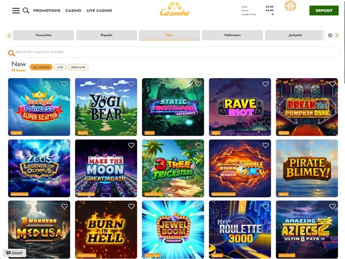 Casimba Casino tarjoaa suomenkielisen pelikokemuksen ja huikean pelivalikoiman, joka käsittää jopa 5214 erilaista rahapeliä monipuolisista kategorioista. Valikoimassa on kaikkea kolikkopeleistä ja pikapeleistä aina live-kasinoon, klassisiin pöytäpeleihin ja jännittäviin turnauksiin, kuten suosittuihin Drops & Wins -kilpailuihin.