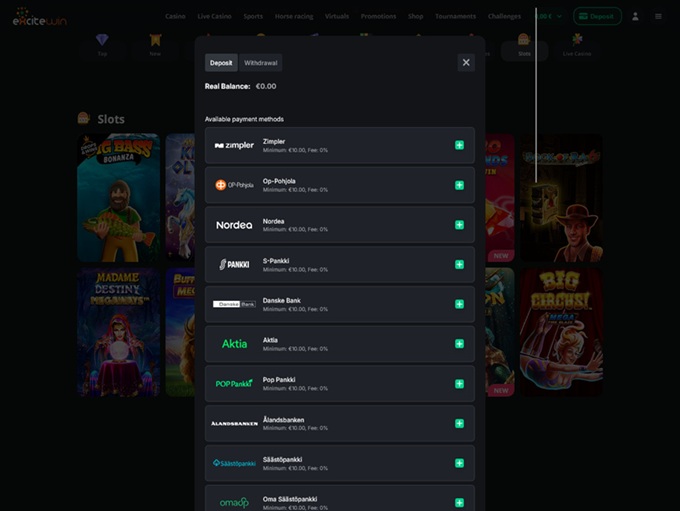 Pelisivustolla on mahdollista käyttää pikatalletus ja -kotiutusmenetelmää Zimpleriä, jonka avulla maksut tapahtuvat nopeasti ja turvallisesti omia verkkopankkitunnuksia käyttäen!