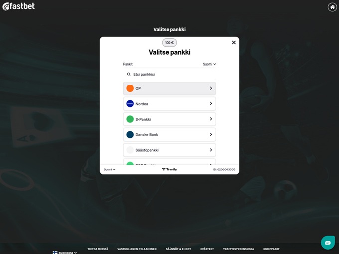 Fastbet tarjoaa pelaajilleen todella nopeat voittojen kotiutukset ja laajan valikoiman suosittuja ja turvallisia maksumuotoja. Voit käyttää rahaliikenteeseen seuraavia maksumuotoja: Neteller, Skrill, Visa, Master Card, Trustly, Paysafe Card & Zimpler.