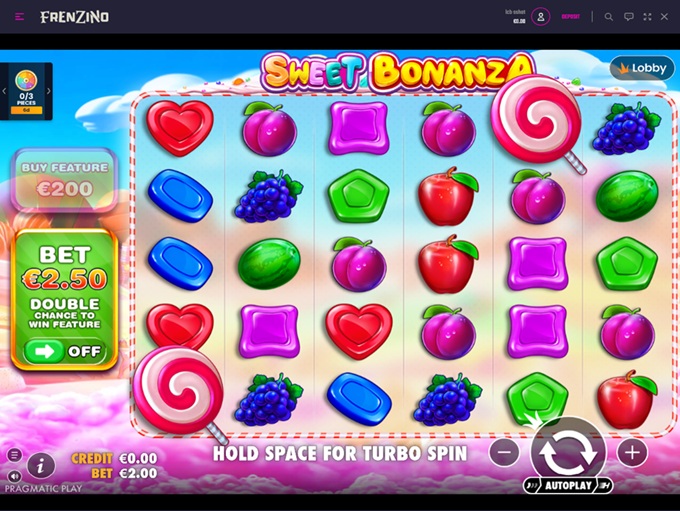 Frenzino Casinolta löytyy yli 13 800 kolikkopeliä, ja suosituimmat slotit on nostettu esiin etusivulle. Valikoimassa on runsaasti erikoistoimintoja kuten Megaways- ja osta bonus -pelejä. Kolikkopelejä edustavat mm. Gates of Olympus, Sweet Bonanza, Book of Dead ja Big Bass Bonanza.