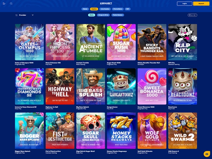 KarhuBetin pelivalikoimassa sheriffi ei jää toimettomaksi, tarjolla on nimittäin yli 3 400 peliä, joissa riittää seikkailua ja jännitystä jokaiseen pelisessioon. Tunnetut pelitalot kuten Ruby Play, Relax Gaming ja NetEnt huolehtivat laadusta, ja sertifioitu satunnaislukugeneraattori eli RNG takaa reilun pelikokemuksen jokaisella kierroksella.