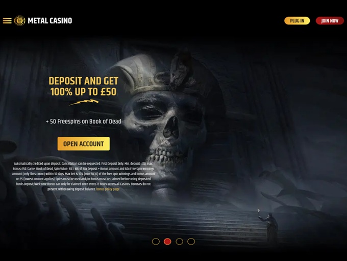 Metal Casino on uudehko, mutta suosiota saavuttanut kasino erityisesti metallimusiikin ystäville. Tämä kasino on luotettava sekä tarjoaa laajan pelivalikoiman. Nyt voit nauttia hyvin toimivasta sivustosta myös mobiililaitteellasi. Lunasta itsellesi 3 Super Wheel Spiniä Golden Wheeliin sekä 100 % talletuksestasi bonurahana aina 100 euroo saakka yli 10 euron ensitalletuksella.