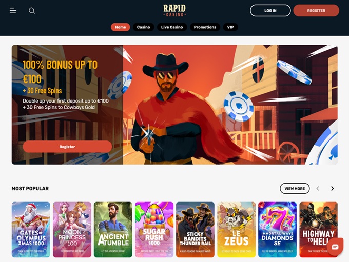 Elokuvamainen pelisivusto Rapid Casino tarjoaa ensiluokkaista viihdettä ja takaa turvallisen peliympäristön MGA-lisenssin alaisuudessa. Cowboy fani ei tarvitse olla, sillä sivustolla viihtyvät kaikki laadukkaiden pelien arvostajat ja pelejä löytyykin runsaasti eri teemakategorioista.