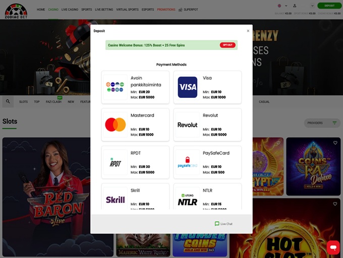 ZodiacBet on monipuolinen kasino ja vedonlyöntisivusto, joka tarjoaa suomalaisille pelaajille ainutlaatuisen mahdollisuuden pelata myös kryptovaluutoilla. Suomenkielinen kasino on helppokäyttöinen ja se soveltuu erinomaisesti myös mobiilissa pelattavaksi.
